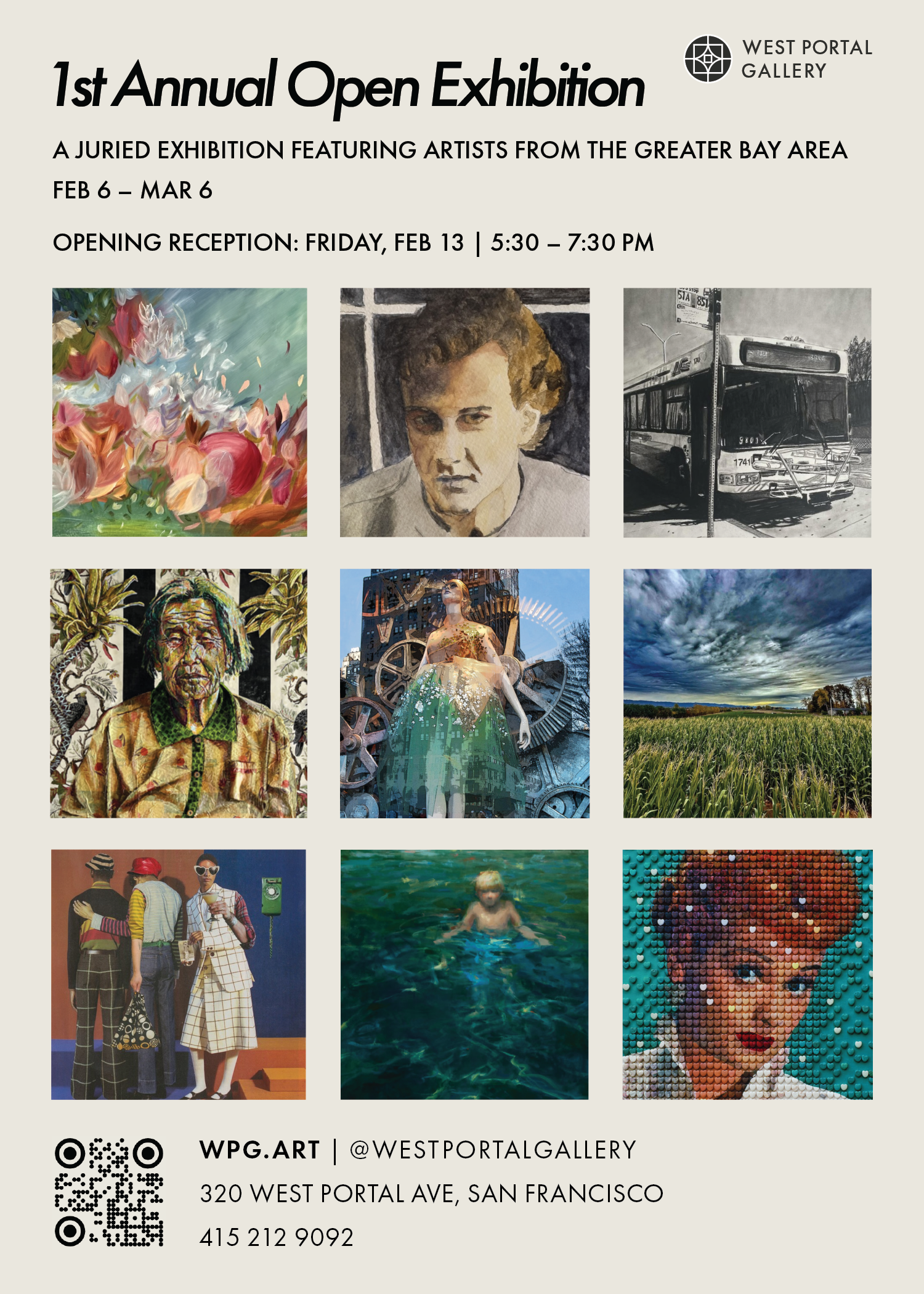 This juried exhibition brings together 120 works by artists from across the San Francisco Bay Area, highlighting a wide range of contemporary approaches and practices. Selected for clarity of vision, material intelligence, and thoughtful process, the exhibition reflects West Portal Gallery’s commitment to supporting serious artistic work and fostering meaningful engagement between artists and audiences.